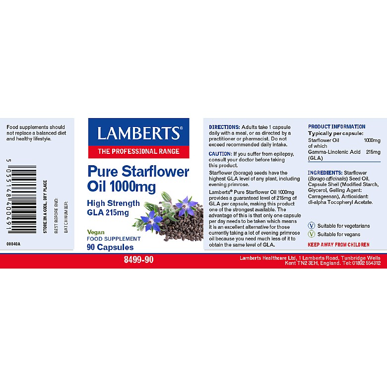 Pure Starflower Oil 1,000mg (Borage – Omega-6) – 90 Capsules – Lamberts®